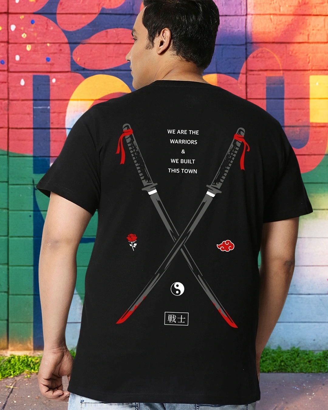 Men's Black Warriors Graphic Printed Plus Size T-shirt