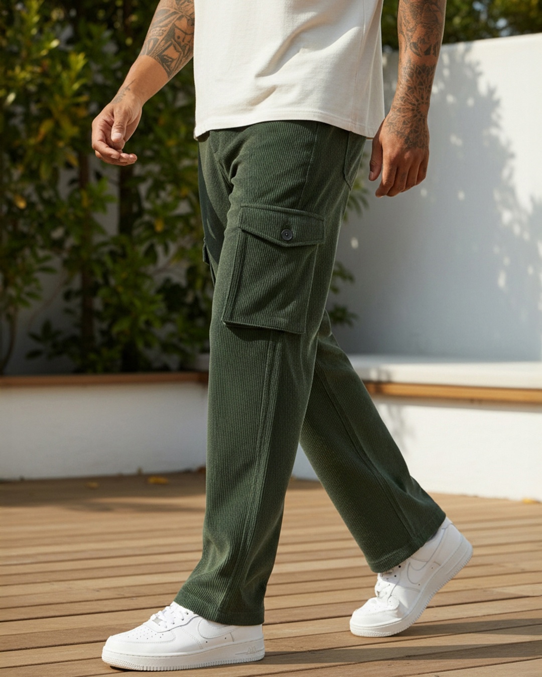 Men's Dark Olive Green Straight Fit Cargo Corduroy Pants