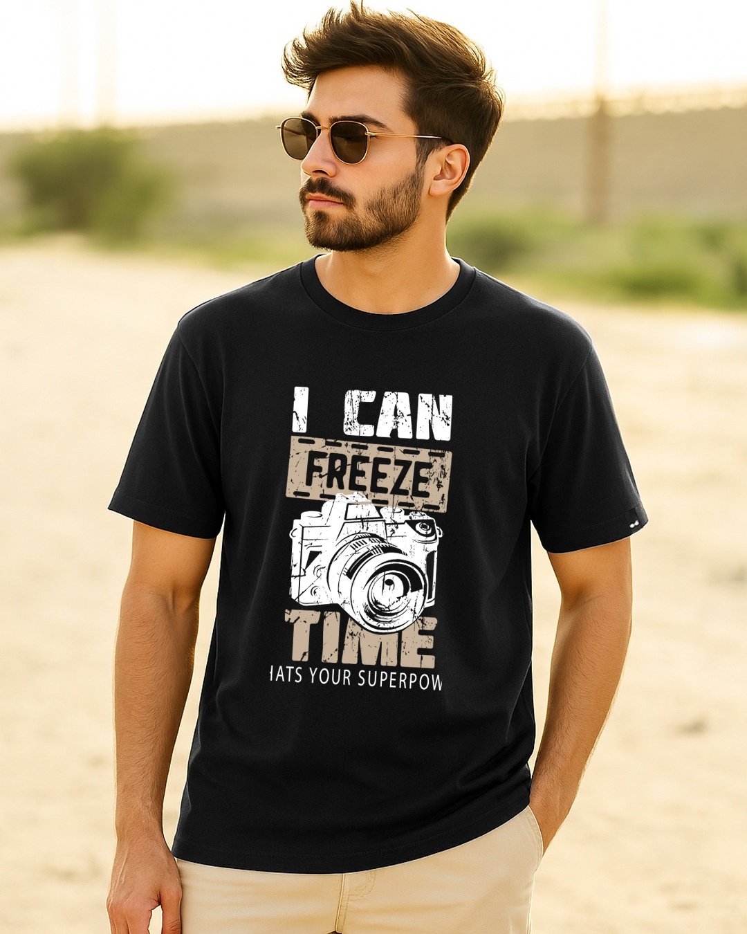 Men's Jet Black Freeze Time Graphic Printed T-shirt